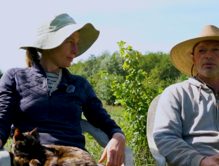 Yseult et Boris ont créé une ferme nourricière à Saint-Augustin près de Coulommiers (77). Ils accueillent depuis 2 saisons 7 cochons pour fertiliser leur future parcelle de pommes de terre et limiter les intrants sur la ferme.