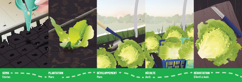 Chaque semaine, les maraîcher·ères garnissent nos paniers de légumes locaux et de saison. Mais savez-vous comment poussent les salades au fil de la saison et les soins apportés par les maraîcher·ères pour faire face aux aléas sur ce légume ?