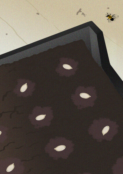 Pour cette première série, Andrea prépare ses semis en mars : elle sème les graines en terrine sous serre. Les graines ont besoin de beaucoup de chaleur pour germer, entre 20 et 25° C. Dès l’apparition des premières feuilles, les cotylédons, Andrea les repique dans des godets où les plants resteront, bien protégés, entre 2 et 3 semaines.