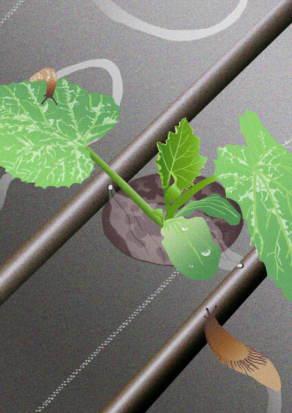 C’est l’heure de la plantation sous serre et sur bâche, ce qui limite fortement le désherbage et permet de conserver l’humidité tout en protégeant les courgettes. Andrea prend soin d’avoir un sol riche, bien drainé (qui ne laisse pas l’eau stagner) et réchauffé. Elle a ajouté au préalable du compost ou du fumier décomposé au sol. Andrea dispose les plants à 75-100 cm d’écart pour laisser à la plante l’espace de se développer et avoir assez d’apports.