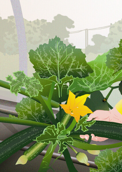 Pour que la courgette nous accompagne tout l’été, Andrea, maraîchère bio en AMAP en Ile-de-France, produit plusieurs séries de courgettes : la première sous serre et les suivantes à l’extérieur.