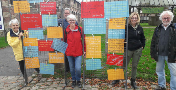 L'agriculture, c'était mieux avant ? Manger, un acte politique ? Si vous étiez paysan·nes, vous seriez … ? C'est équipé d'une de ces questions que des équipes d'amapien·nes ont investi l'espace public à plusieurs occasions. L'objectif premier : échanger avec des personnes d'horizon divers sur des questions relatives à l'alimentation et à l'agriculture et ainsi réinsuffler du débat dans l'espace public.