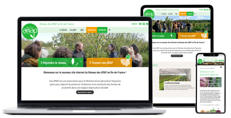 Depuis quelques jours, le Réseau AMAP IdF offre un nouveau visage aux internautes visitant son site : un design plus clair et épuré, illustré de photos et d'infographies apportant chair et texture à notre Réseau ! S'adaptant à toutes les tailles d'écrans, il permet désormais d'être accessible de manière optimale dans les champs, sur les forums ou plus calmement dans son canapé !