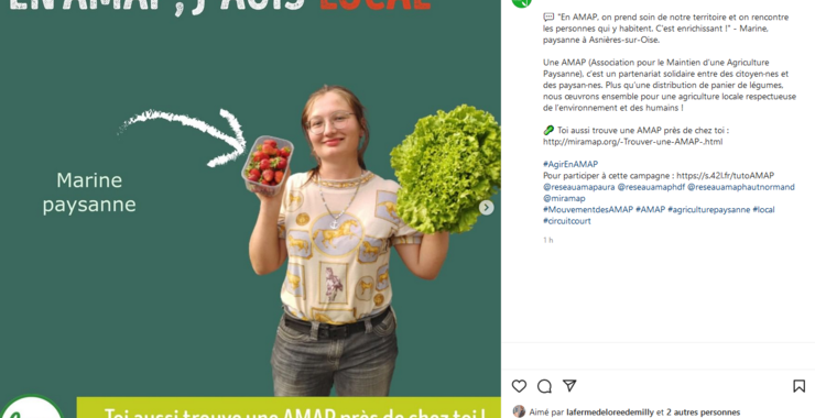 - Je suis un·e amapien·ne/paysan·ne en AMAP/citoyen·ne engagé·e : je relaie la campagne sur Instagram et Facebook !